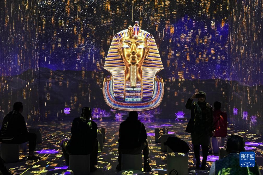 11月20日,人們在埃及吉薩的大埃及博物館參觀圖坦卡蒙沉浸式展覽。
