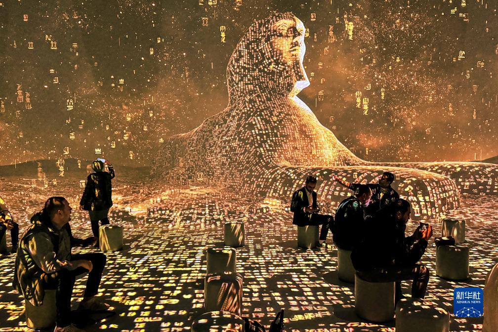 11月20日,人們在埃及吉薩的大埃及博物館參觀圖坦卡蒙沉浸式展覽。