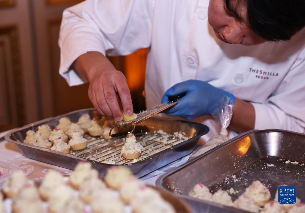 11月20日,在位于巴黎的法國外交部舉行的LA LISTE國際美食榜單揭曉活動(dòng)現(xiàn)場(chǎng),來自韓國的主廚為來賓準(zhǔn)備美食。