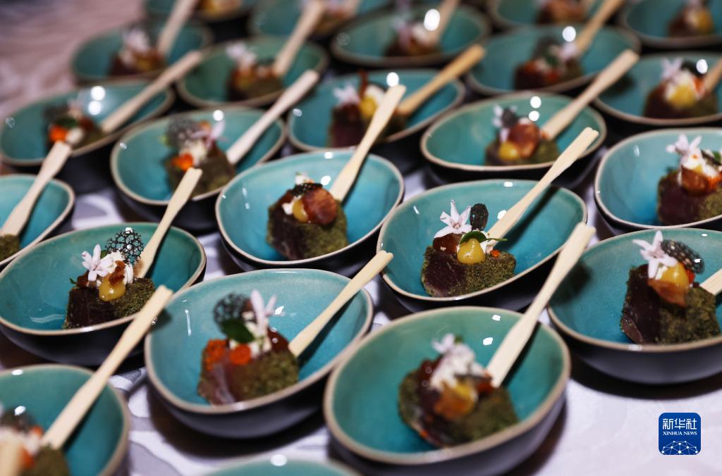 這是11月20日在位于巴黎的法國外交部舉行的LA LISTE國際美食榜單揭曉活動現場拍攝的美食。