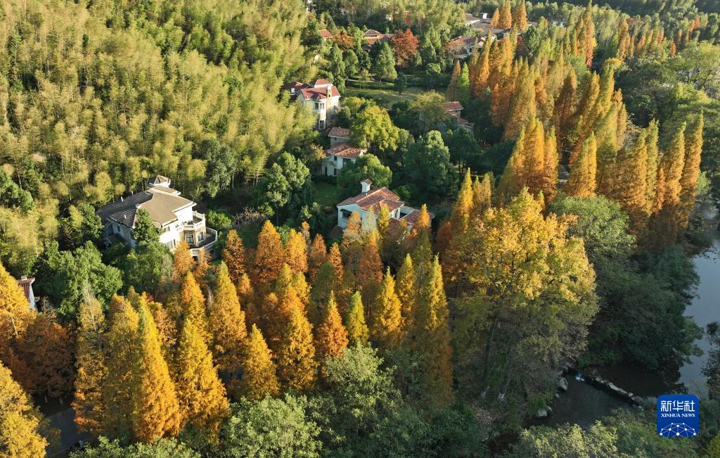 初冬時(shí)節(jié),在位于江西省南昌市的梅嶺國家森林公園,紅色的水杉、黃色的銀杏、綠色的松柏等相互交錯(cuò),構(gòu)成一幅美麗的冬日畫卷,吸引不少游客前來觀賞。