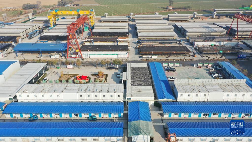 11月21日拍攝的濟濱高鐵山東路橋集團惠民制梁場箱梁加工現場(無人機照片)。