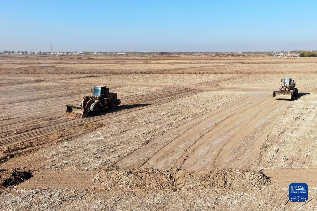 11月15日,內(nèi)蒙古巴彥淖爾市杭錦后旗蠻會(huì)鎮(zhèn)公益渠村進(jìn)行高標(biāo)準(zhǔn)農(nóng)田建設(shè)(無(wú)人機(jī)拍攝)。