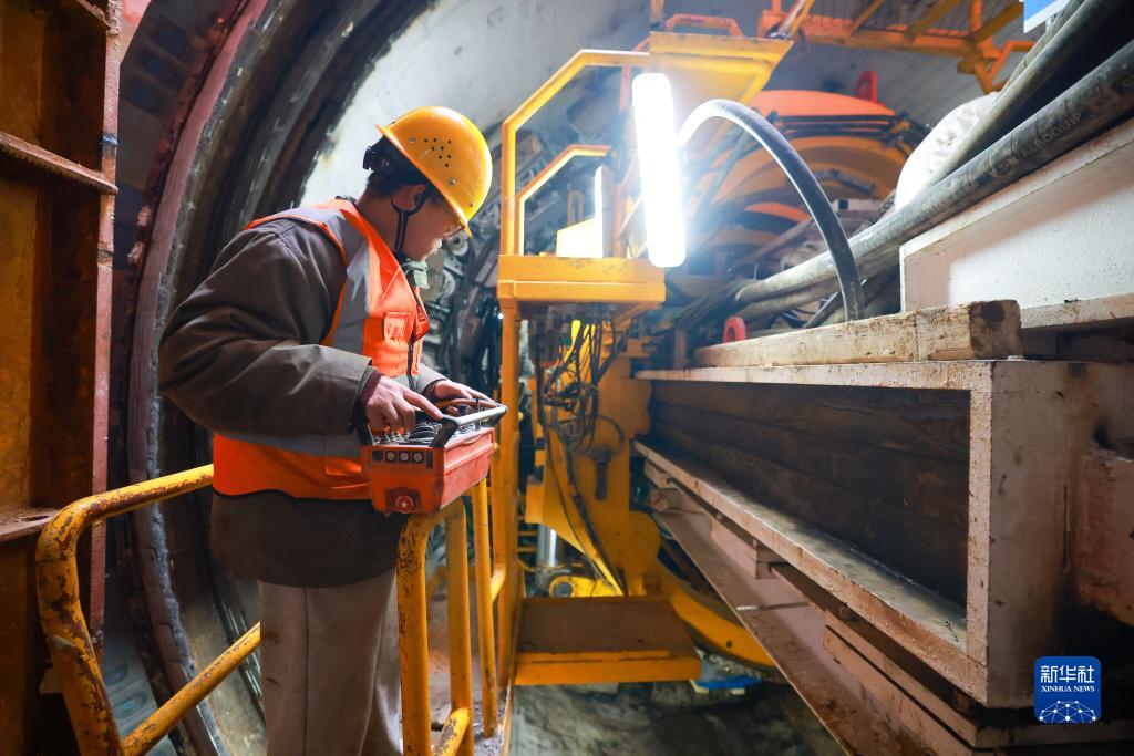 11月21日,中建八局工程技術人員在作業場所對盾構機拼接盤進行調試。