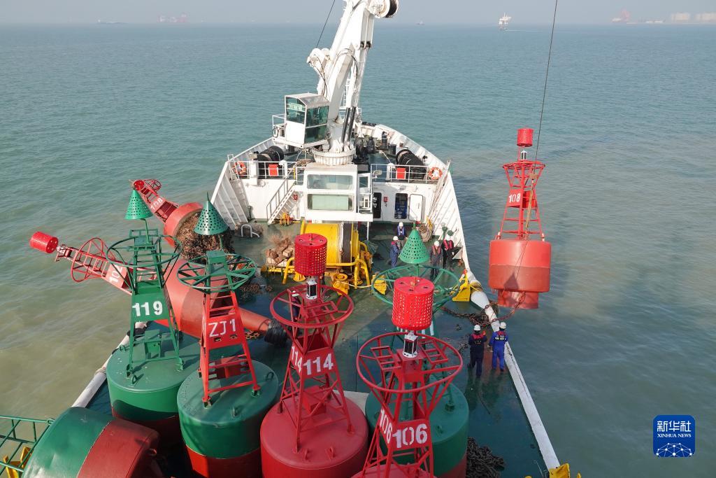 當日,我國冬季海冰冰情較為嚴重的山東省萊州灣海域冬季換標作業開始,交通運輸部北海航海保障中心煙臺航標處派出航標船,對龍口、萊州、濰坊3個港口海域的79座航標進行更新,確保冰期和大風寒潮天氣海上各類導航助航標志持續發揮效能,保障通航環境安全有序。