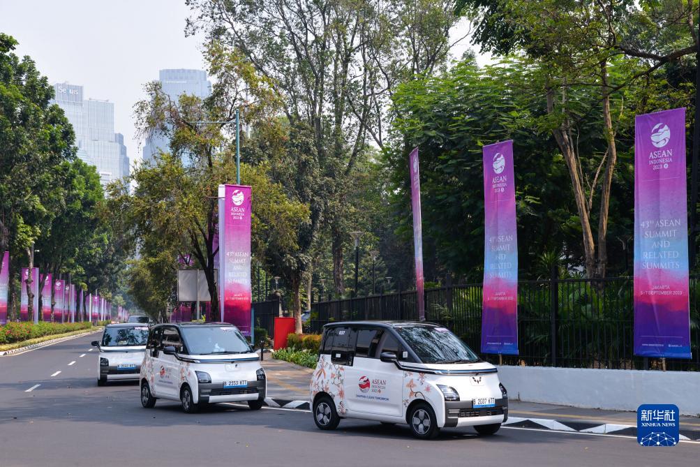 這是9月6日在印度尼西亞雅加達第43屆東盟峰會會場外拍攝的五菱新能源車Air ev。新華社記者 徐欽 攝