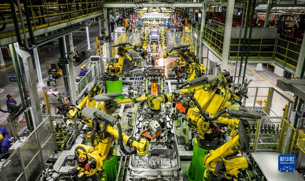 這是位于廣西柳州市的上汽通用五菱生產基地的生產線(資料照片)。新華社發