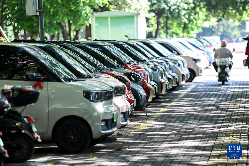 這是在廣西柳州市街頭拍攝的一處新能源汽車專用停車區(10月16日攝)。新華社記者 曹祎銘 攝