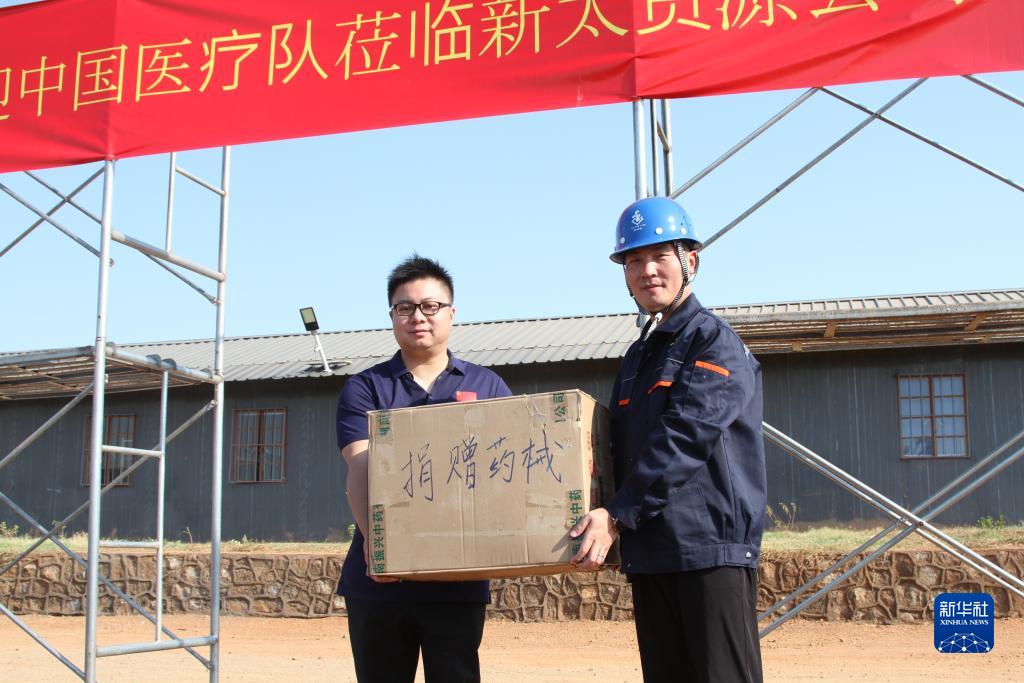11月21日,在津巴布韋南部邊境地區(qū)的新太資源棕櫚河冶金產(chǎn)業(yè)園,中國(guó)醫(yī)療隊(duì)向園區(qū)內(nèi)中企贈(zèng)送藥品。