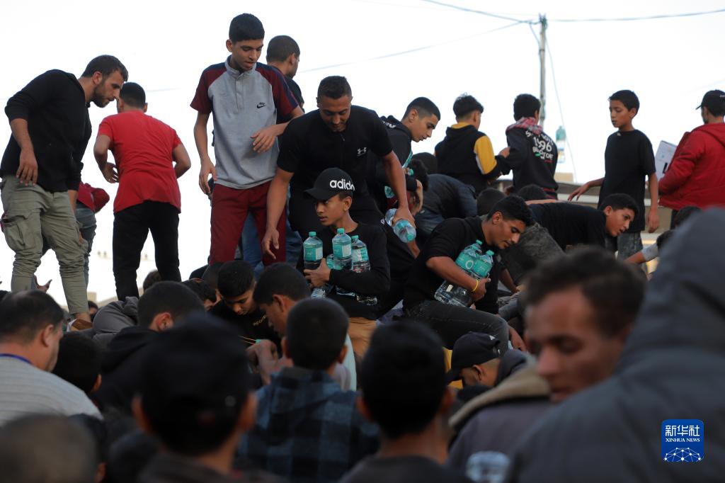 11月21日,在加沙地帶南部城市汗尤尼斯,民眾領取飲用水。