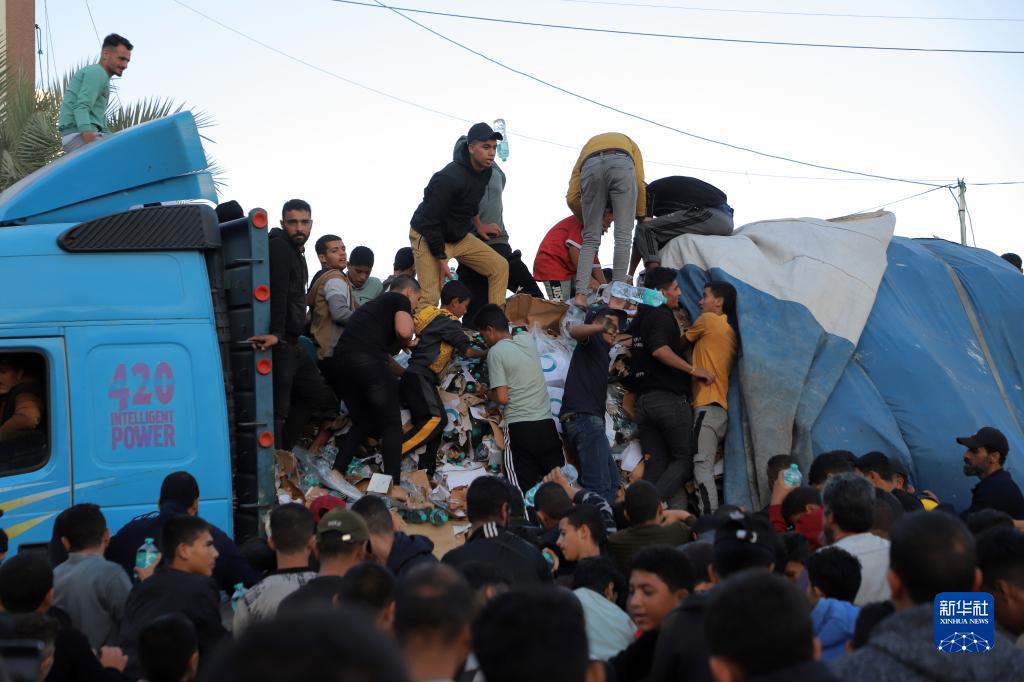 11月21日,在加沙地帶南部城市汗尤尼斯,民眾領取飲用水。