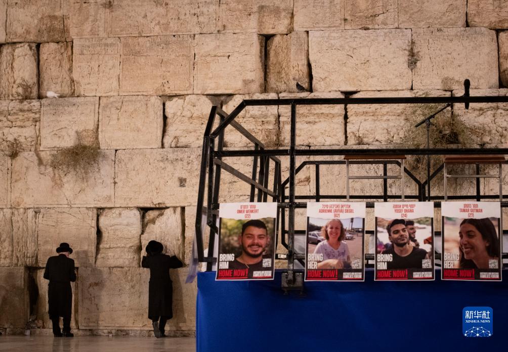 這是11月7日在耶路撒冷老城“哭墻”前拍攝的以色列被扣押人員海報(bào)。