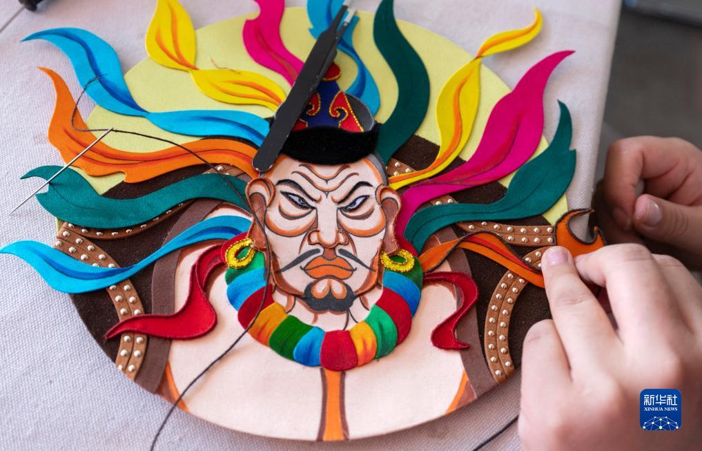 11月16日,在內蒙古阿拉善盟阿拉善左旗的馬鬃繞線蒙古族唐卡傳習所,一名學徒在制作蒙古族唐卡。
