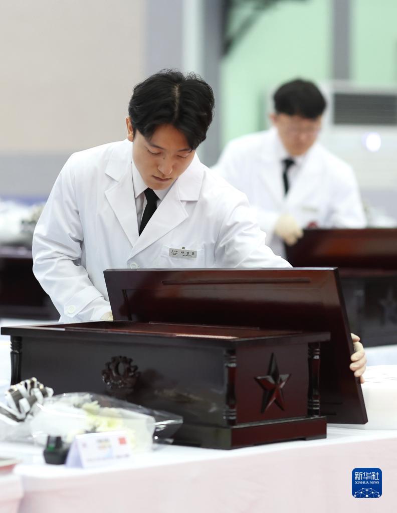 11月22日,在韓國仁川,韓方工作人員將志愿軍烈士遺骸入殮。