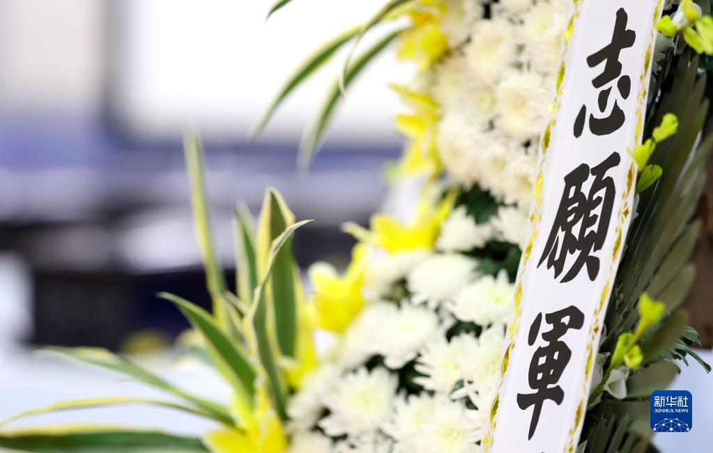 這是11月22日在韓國仁川舉行的第十批志愿軍烈士遺骸裝殮儀式現場拍攝的花籃緞帶。