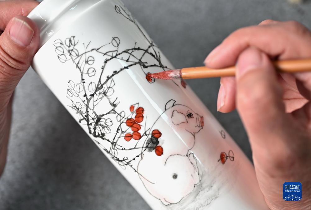 11月21日,一位工藝美術(shù)師在唐山市開平區(qū)陶瓷文創(chuàng)產(chǎn)業(yè)園創(chuàng)作陶瓷繪畫作品。