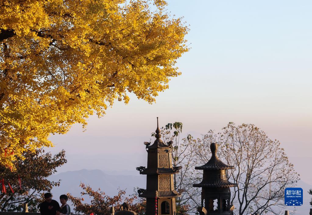 諸暨市店口鎮(zhèn)杭塢山頂?shù)墓陪y杏樹葉金黃,吸引游人觀賞(11月21日攝)。