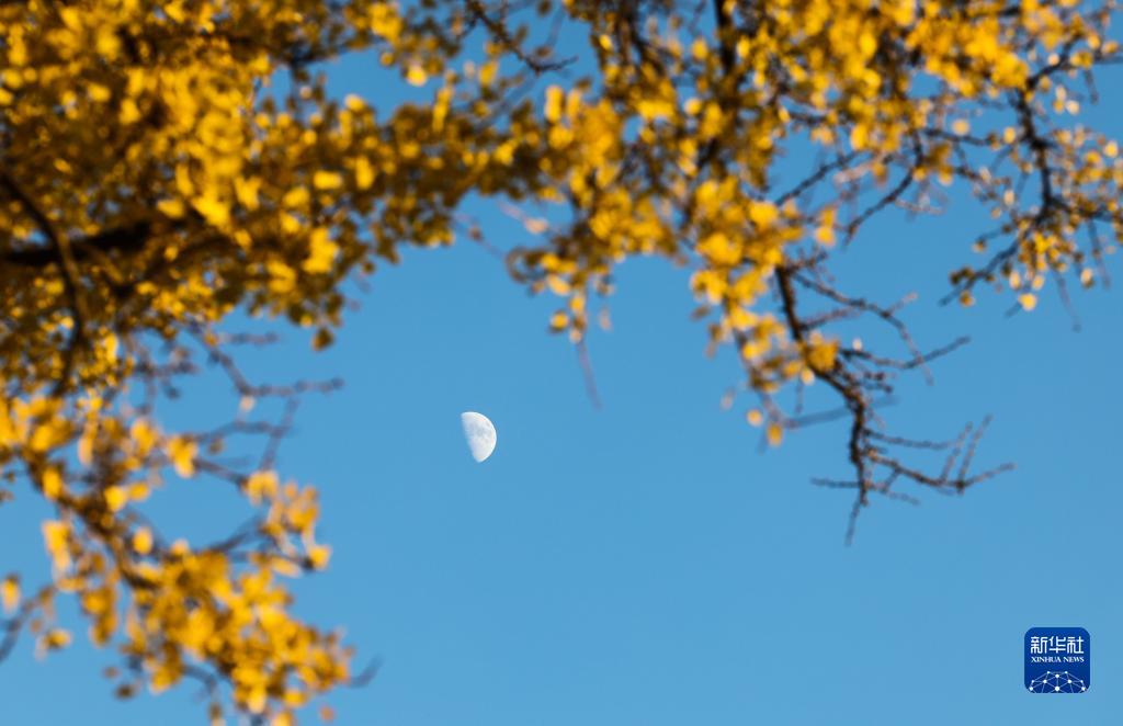 諸暨市店口鎮(zhèn)杭?jí)]山頂?shù)墓陪y杏樹(shù)葉金黃(11月21日攝)。
