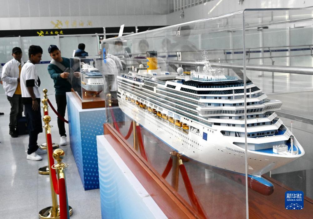 人們在青島郵輪母港客運中心內參觀(11月21日攝)。