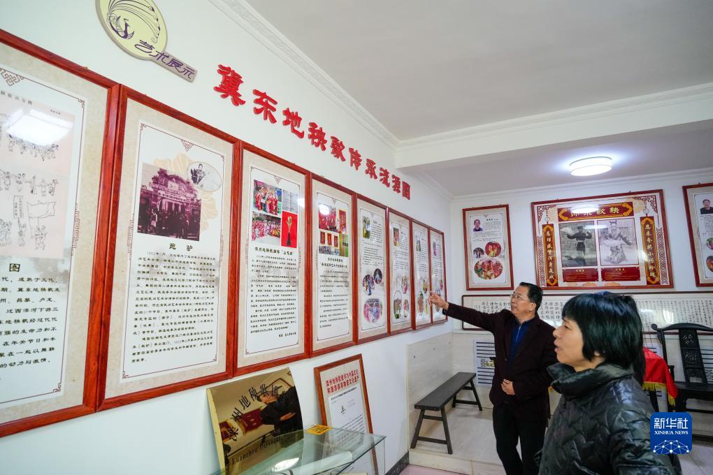11月22日,群眾在河北省灤州市地秧歌藝術收藏館內了解地秧歌文化。