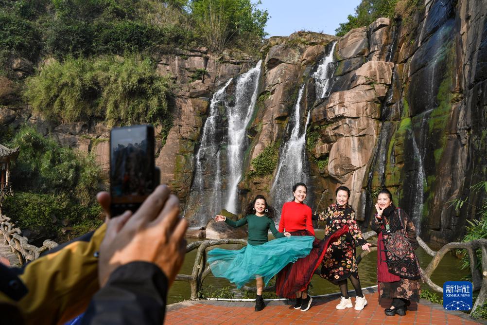 11月21日,游客在重慶市萬盛經開區青山湖國家濕地公園游玩、拍照。