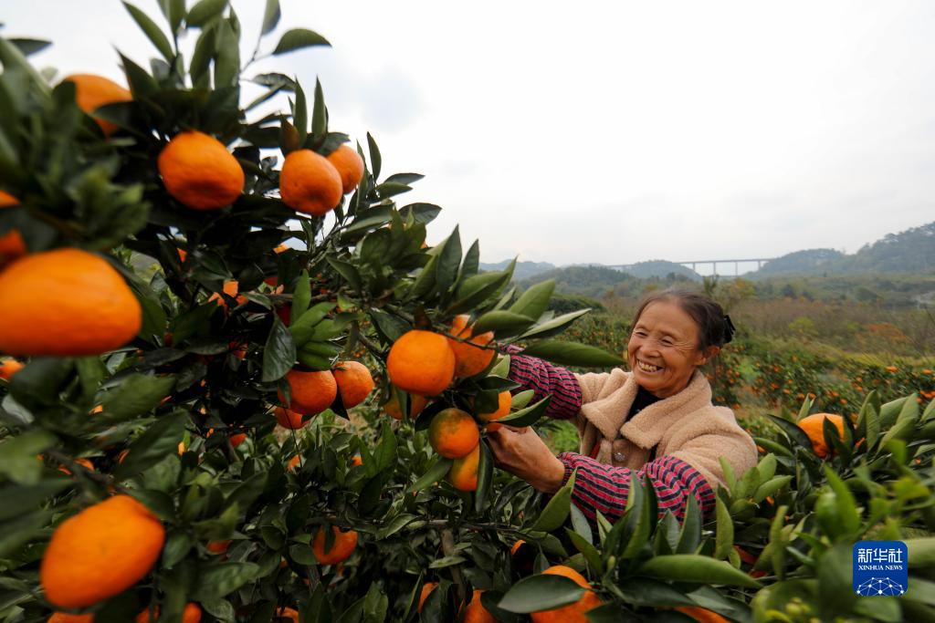 11月22日,村民在貴州省息烽縣小寨壩鎮茅草寨村采摘蜜桔。