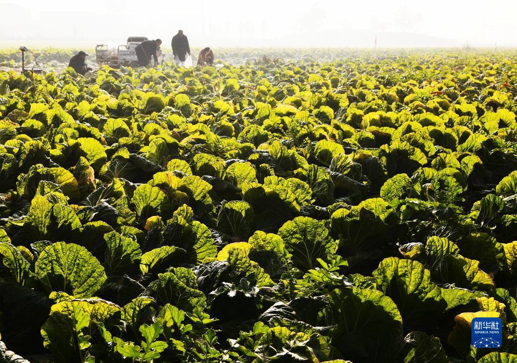 11月22日,河北省石家莊市欒城區小孫村農民在農田里收獲冬儲大白菜。