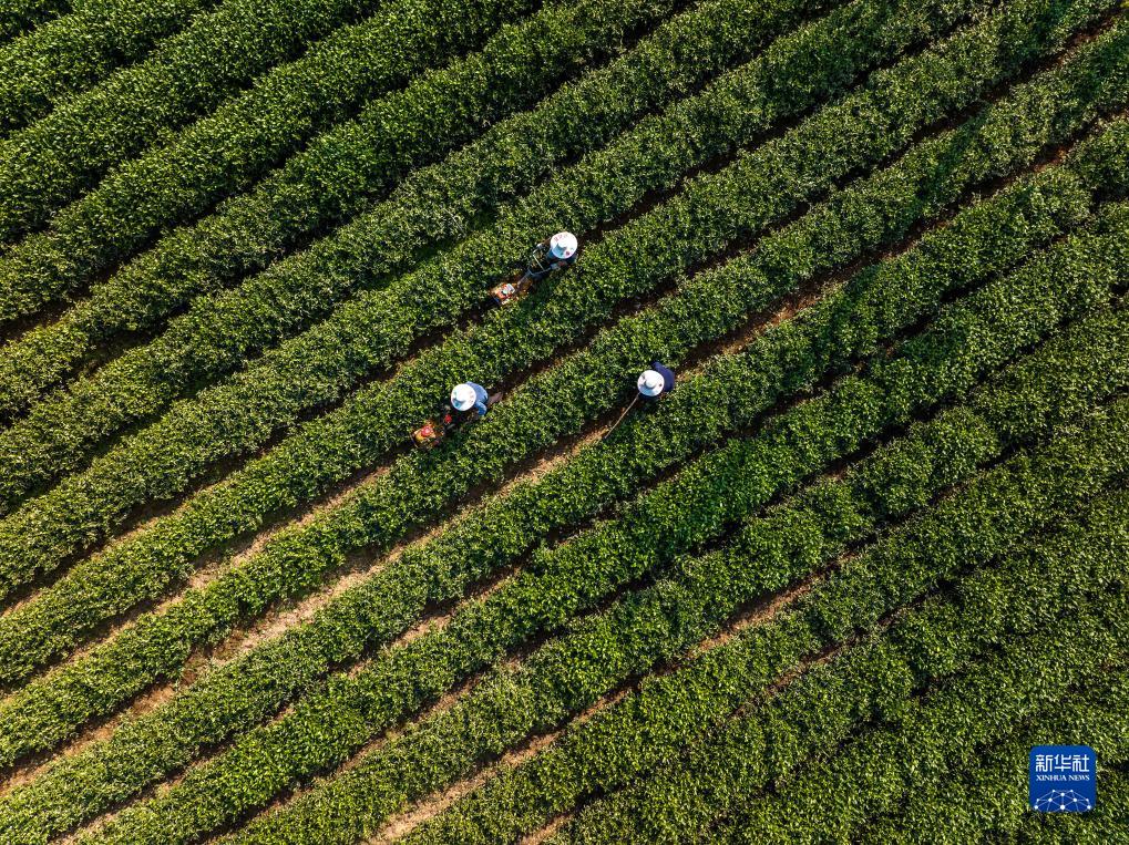 11月22日,湖北省宜昌市秭歸縣茅坪鎮建東村茶農進行茶園管護(無人機照片)。