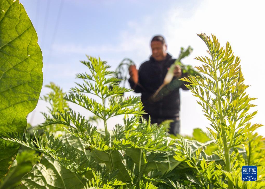 11月22日,在河南省焦作市博愛縣金城鄉(xiāng)西碑村,村民在查看蘿卜長勢。