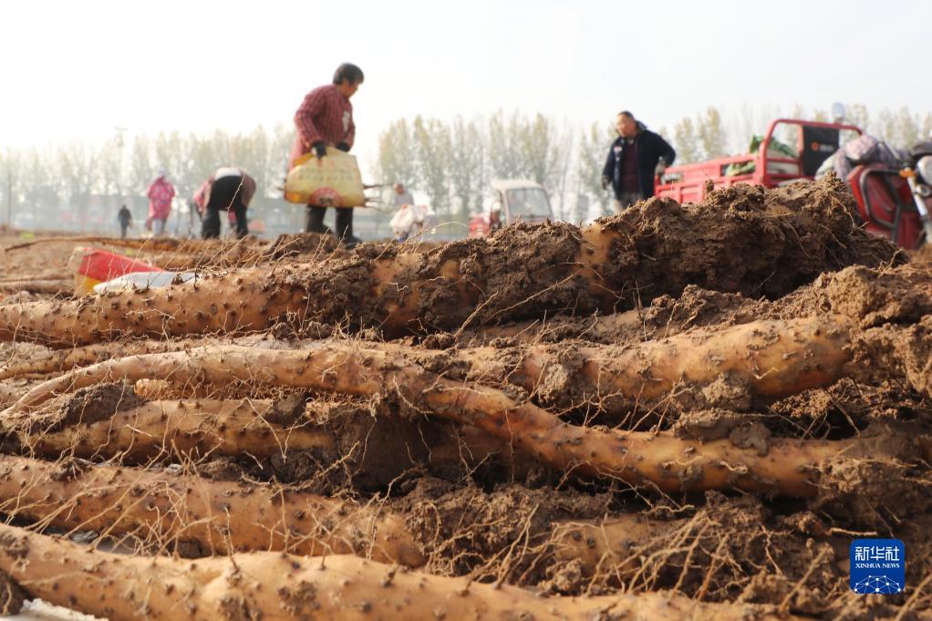 11月22日,在河南省焦作市溫縣黃莊鎮(zhèn)東林肇村,農(nóng)民在田間收獲鐵棍山藥。