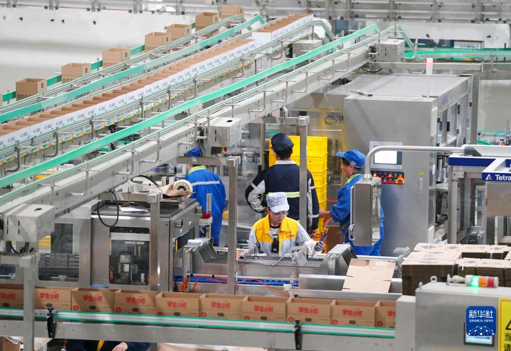 工作人員在威縣君樂寶乳業(yè)有限公司包裝車間工作(11月22日攝)。