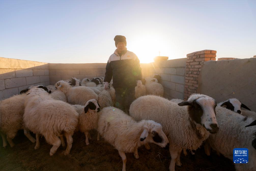 在內蒙古阿拉善左旗烏力吉蘇木溫都爾毛道嘎查,牧民朝勒門格爾勒在羊圈中忙碌(11月17日攝)。