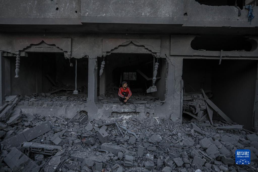 11月23日,在加沙地帶中部的代爾拜拉赫,一名巴勒斯坦人查看以軍空襲后的建筑廢墟。
