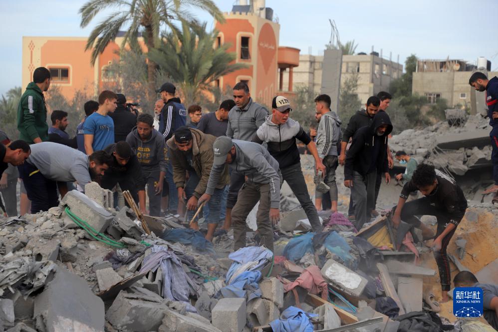 11月22日,在加沙地帶南部城市汗尤尼斯,巴勒斯坦人查看以軍空襲后的廢墟。