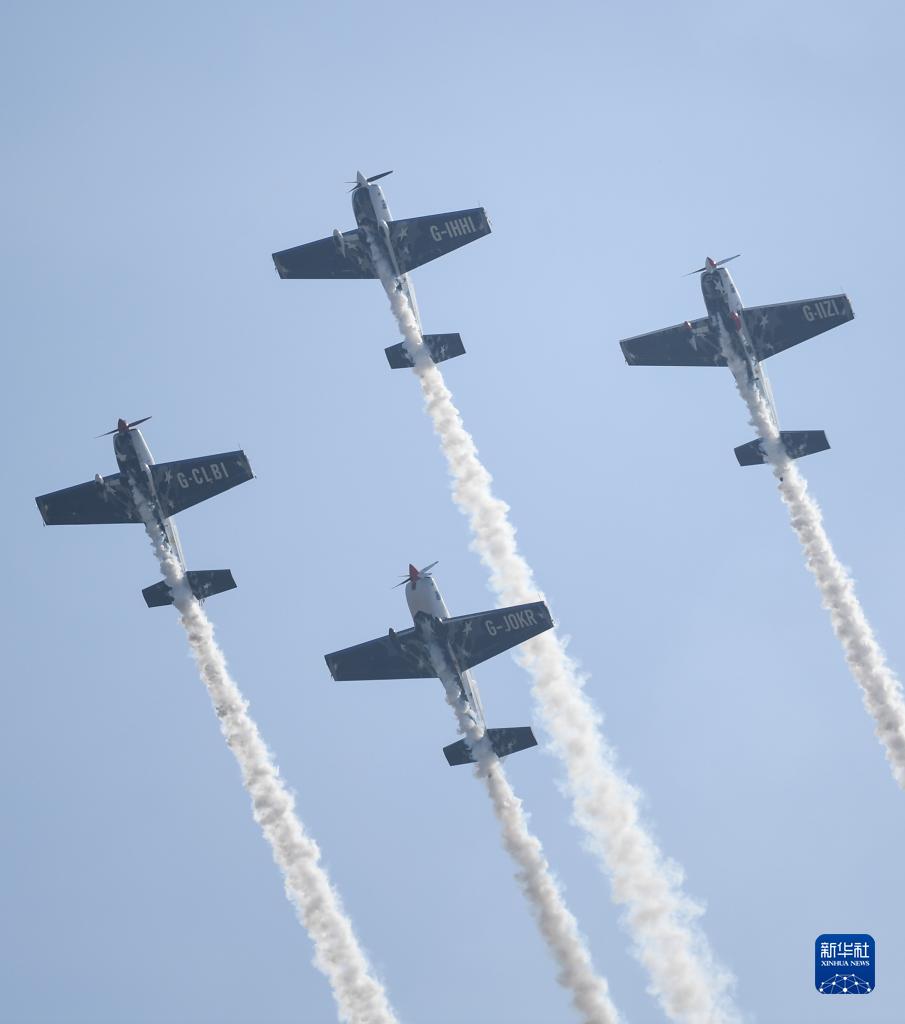 11月23日,歐洲“穿越騎士”飛行表演隊在2023亞洲通用航空展開幕式上進行飛行表演。