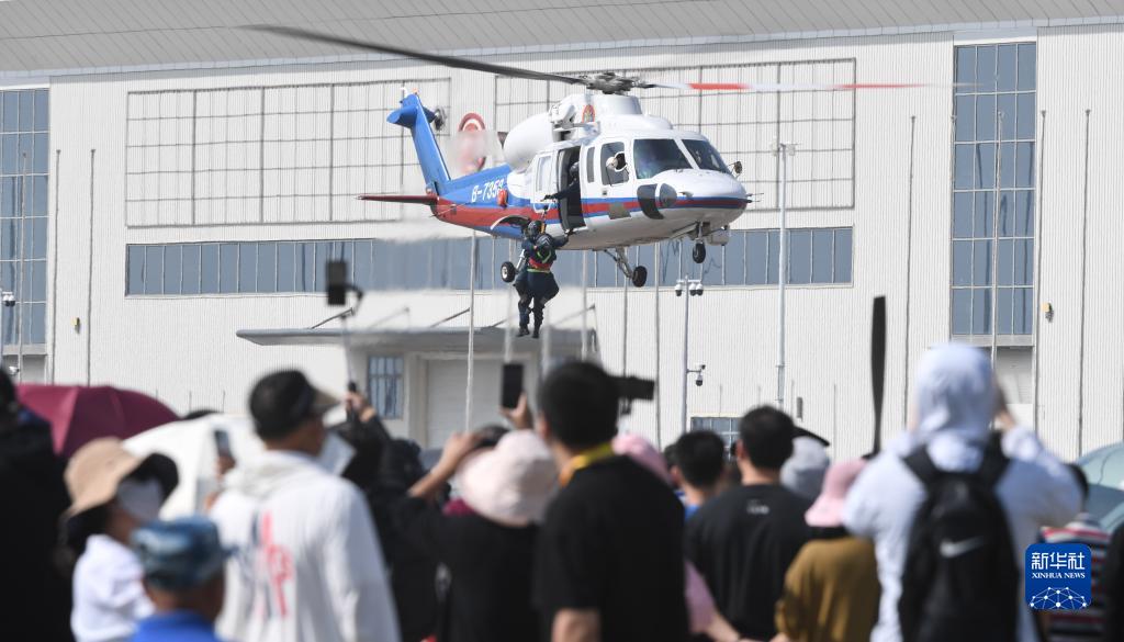 11月23日,交通運(yùn)輸部南海第一救助飛行隊(duì)在2023亞洲通用航空展開(kāi)幕式上進(jìn)行空中救援演示。