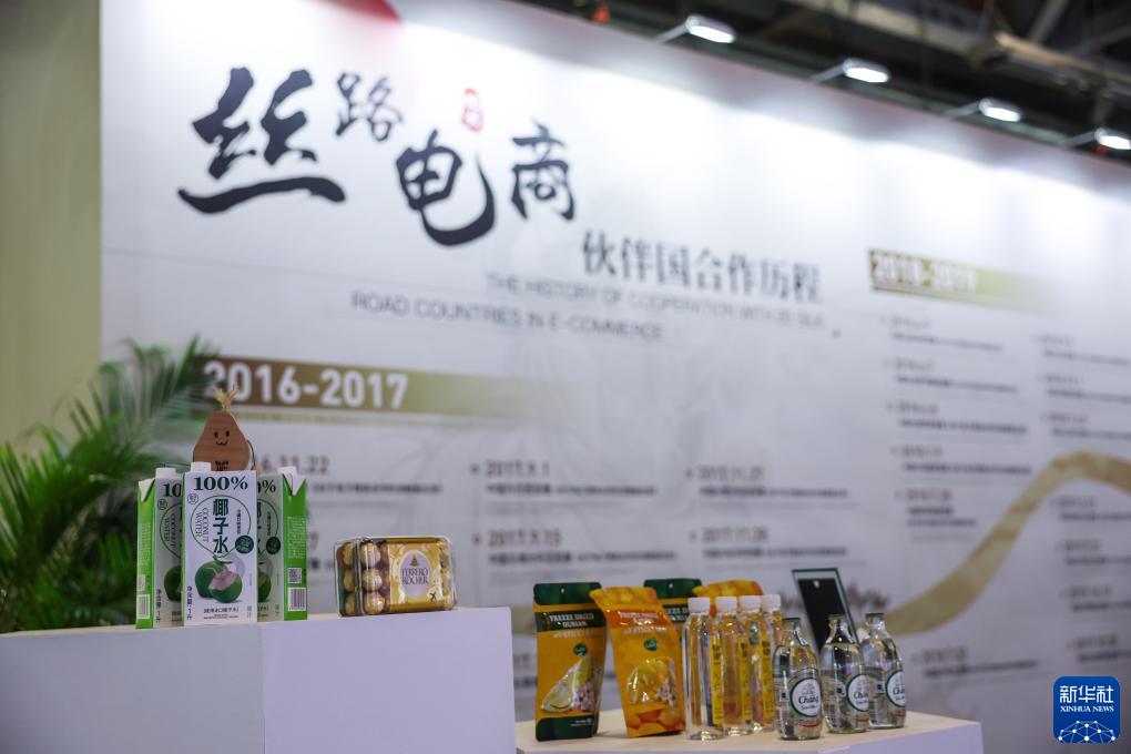 這是第二屆全球數(shù)字貿(mào)易博覽會的絲路電商館的主題展臺(11月24日攝)。