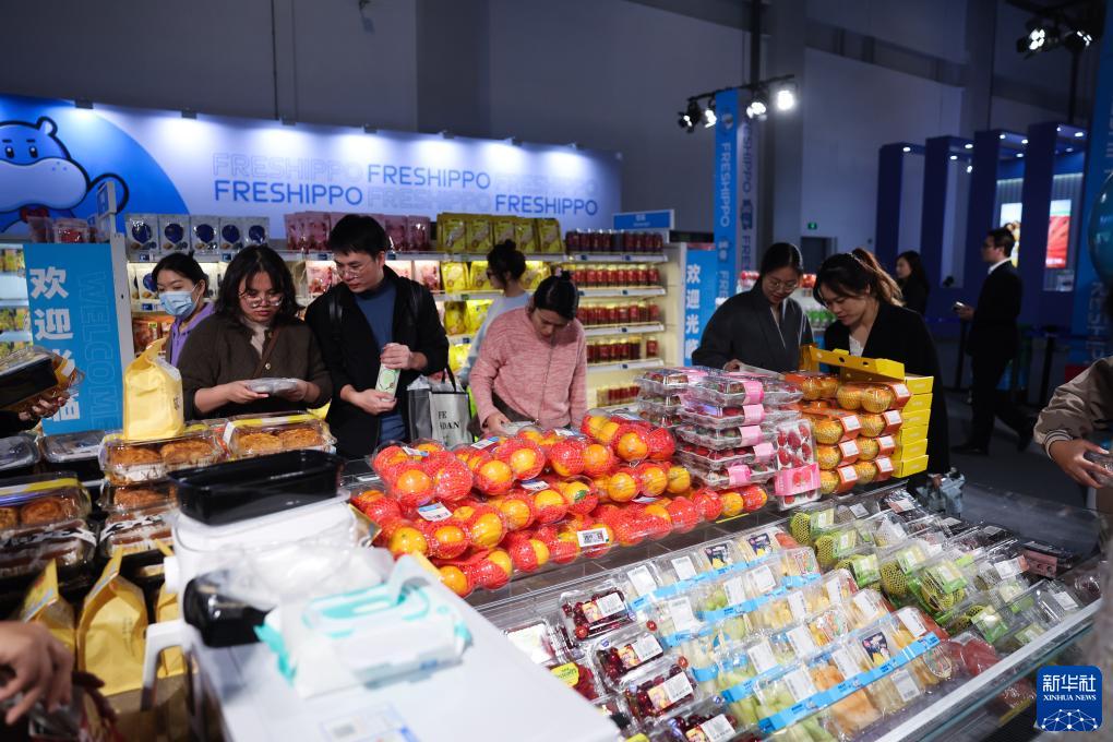 這是第二屆全球數字貿易博覽會的絲路電商館的商品銷售展臺(11月24日攝)。