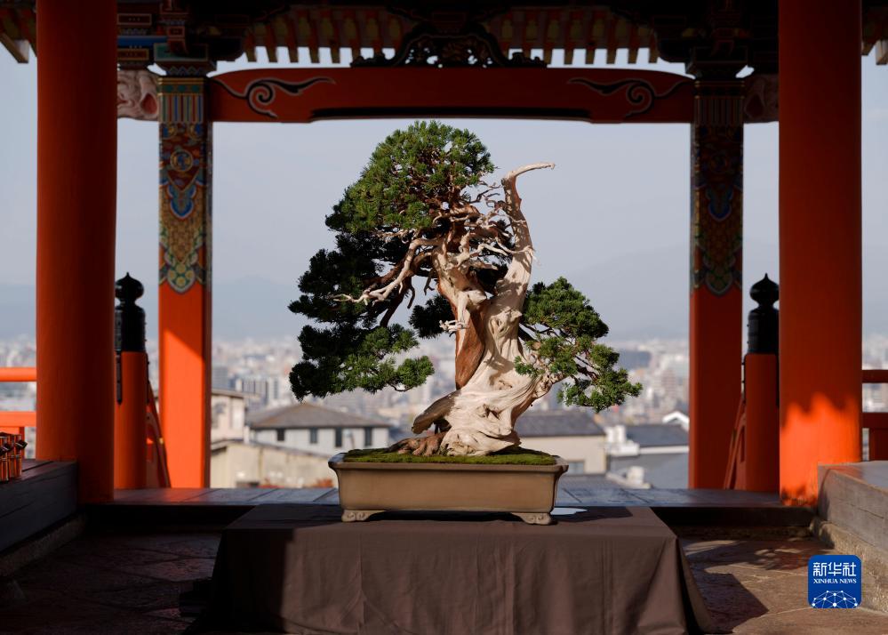 為紀(jì)念中日和平友好條約締結(jié)45周年,中日盆栽水石展24日在京都清水寺開(kāi)幕。盡顯自然山水之美的盆栽作品與寺廟古建筑融為一體,吸引了大批游客駐足觀賞。