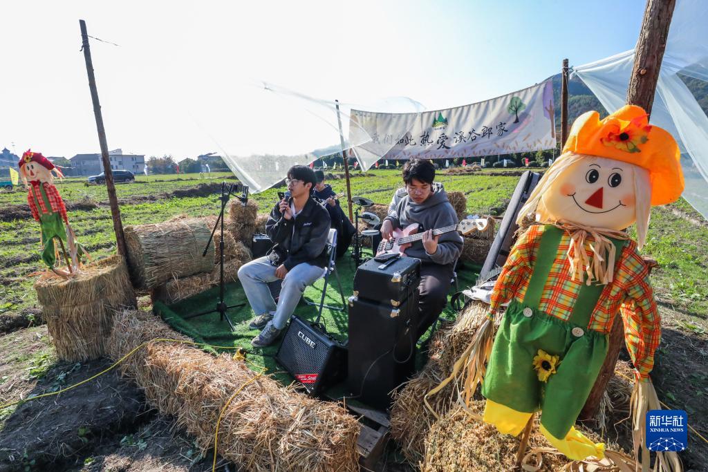 11月25日在杭州市臨安區郎家村拍攝的稻田文化節現場表演。