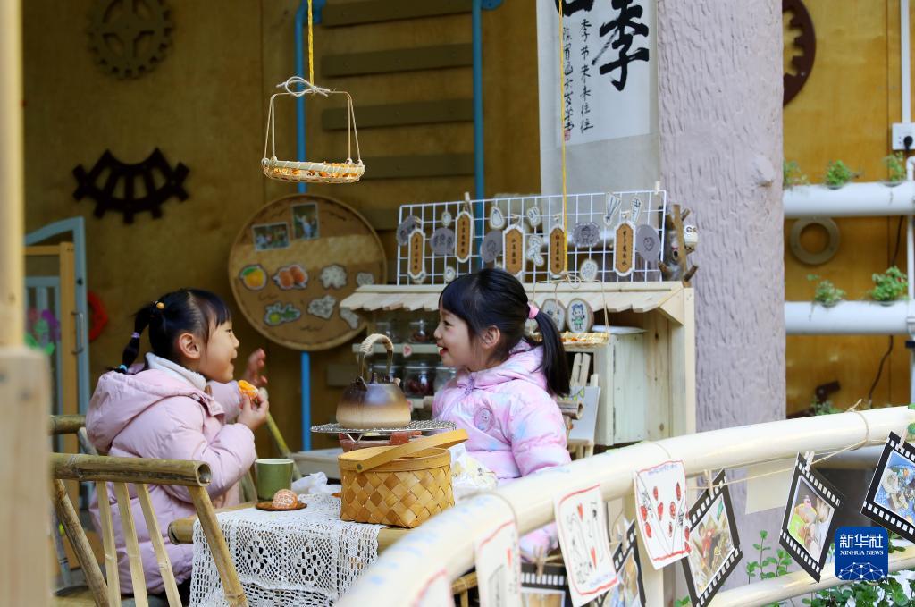 11月24日,在上海市實(shí)驗(yàn)幼兒園,小朋友玩“過家家”游戲時(shí)模擬圍爐煮茶。