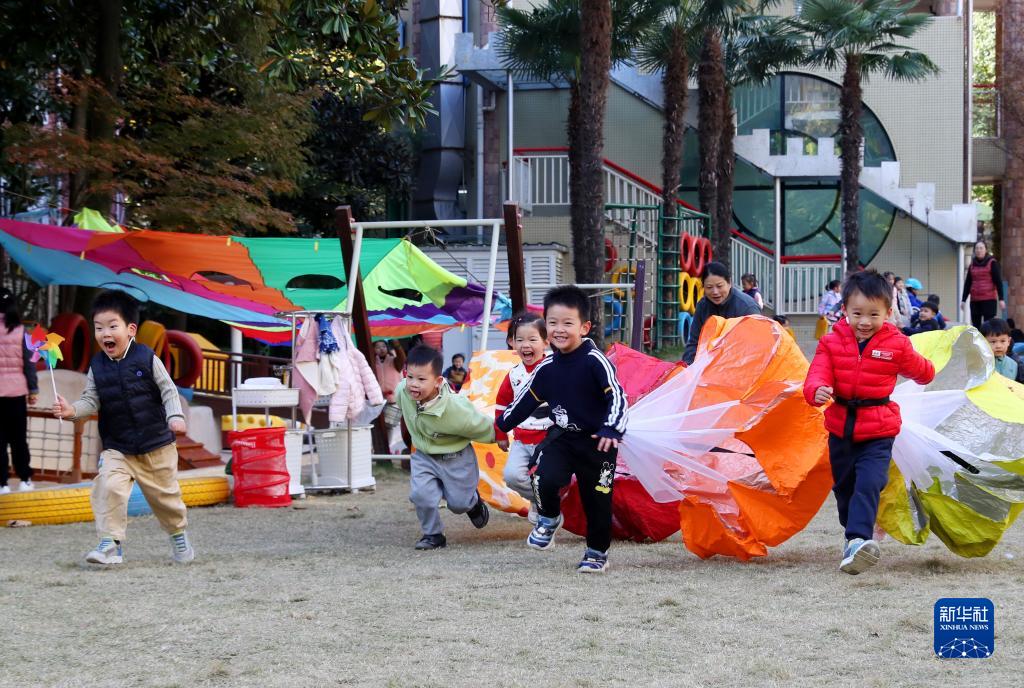 11月24日,在上海市實驗幼兒園,小朋友玩賽跑游戲。