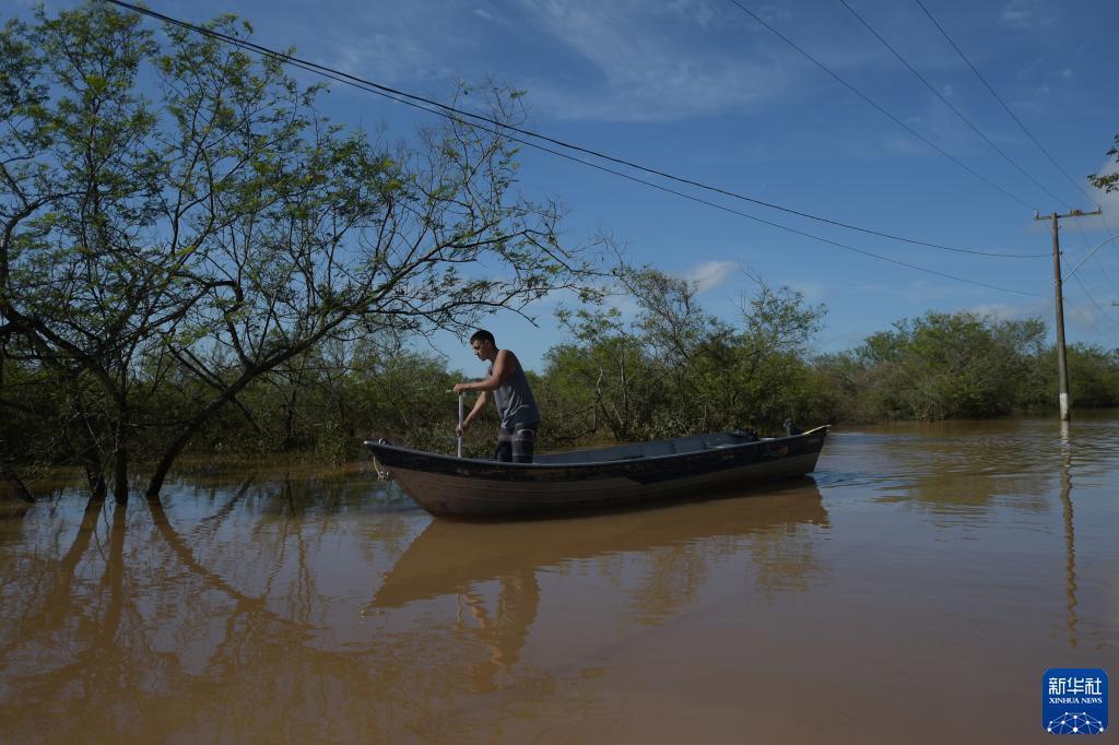 11月24日,在巴西南里奧格蘭德,居民劃船出行。