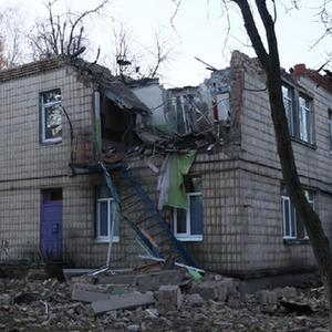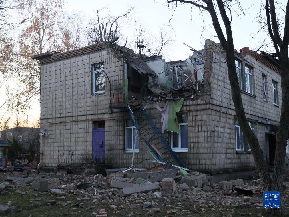 11月25日,在烏克蘭基輔市,一棟建筑屋頂被無(wú)人機(jī)碎片擊中。