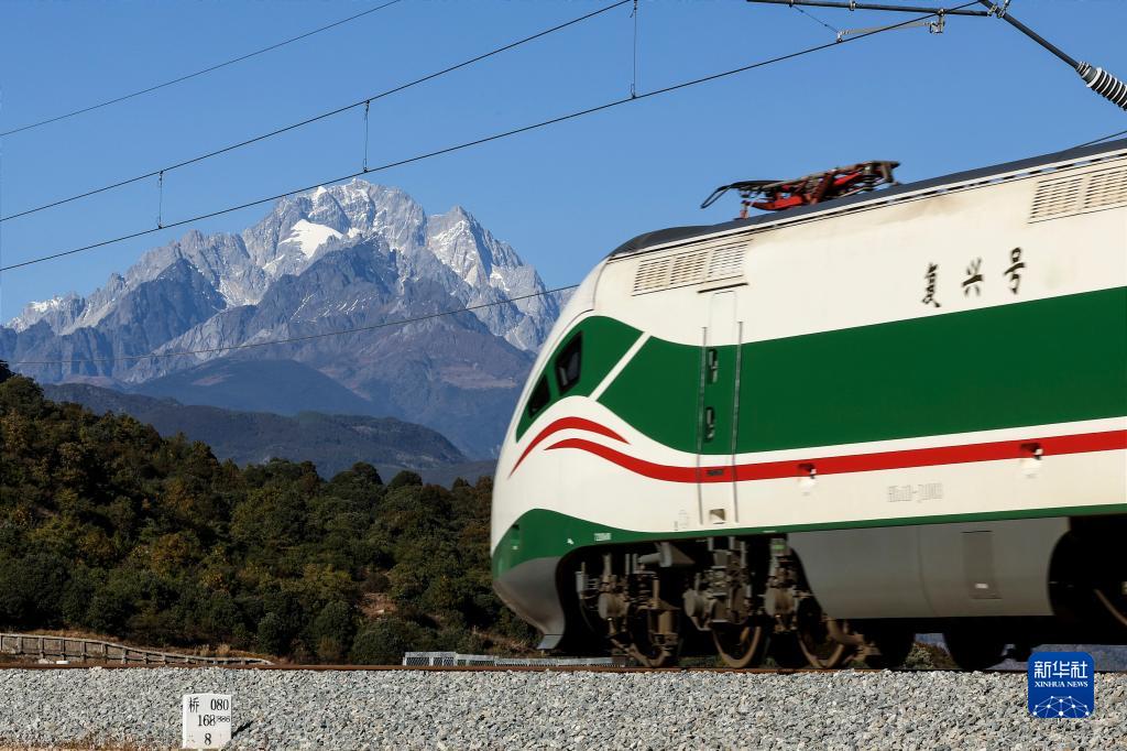 11月26日,列車(chē)從玉龍雪山腳下駛過(guò)。