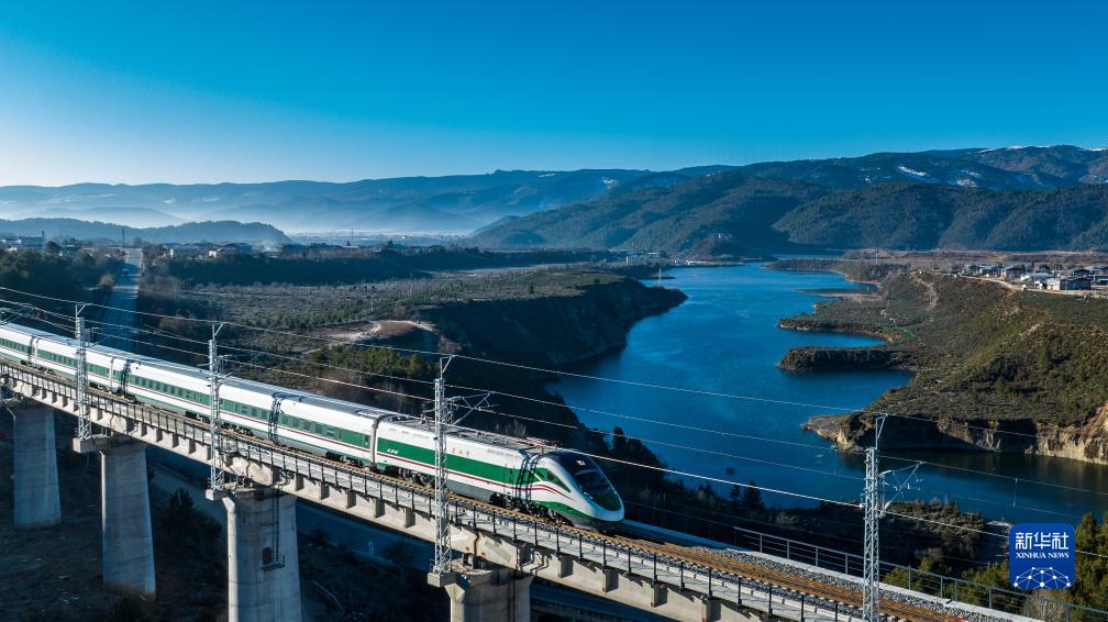 11月26日,列車行駛在麗香鐵路線上(無人機照片)。