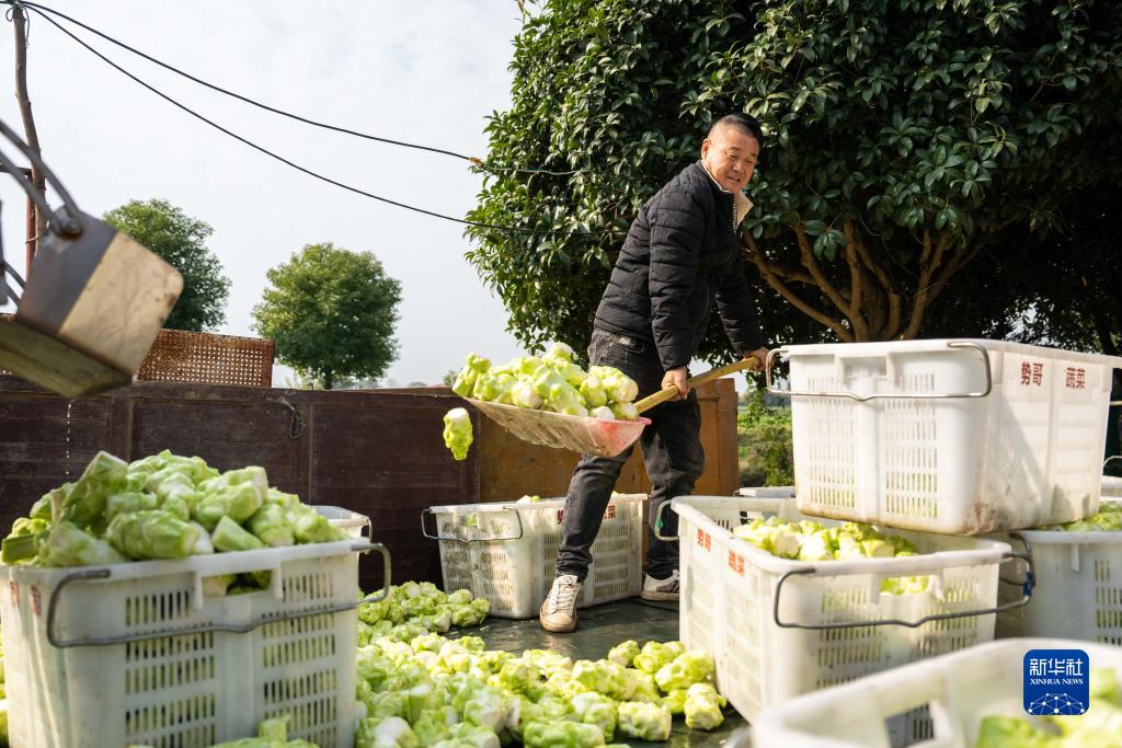 近日,湖南省益陽市南縣種植的榨菜迎來豐收,村民們趁著晴好天氣抓緊采收,削根、去葉、裝袋,田間地頭一派忙碌景象。今年南縣榨菜種植面積約2萬畝,總產值有望達到5000萬元。