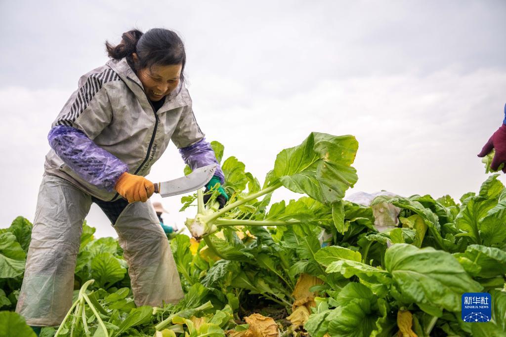 11月26日,在南縣武圣宮鎮太白洲村,菜農在采收榨菜。