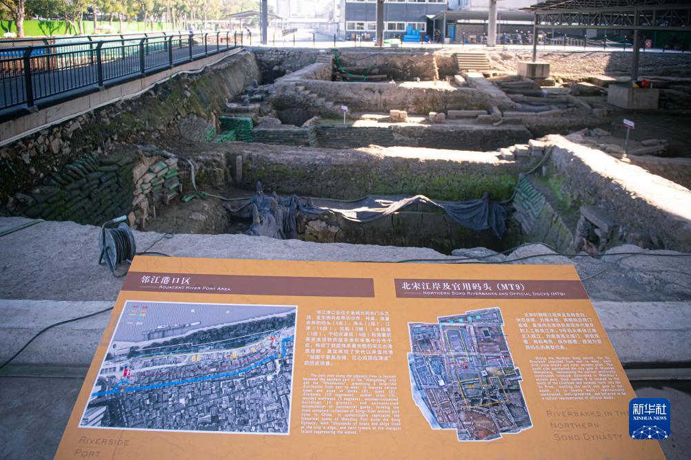 這是11月23日拍攝的溫州朔門古港遺址考古發掘現場。