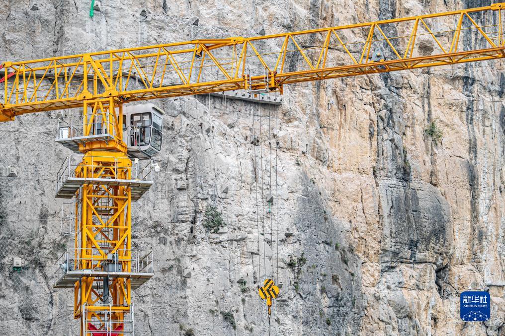 11月26日,在位于重慶市酉陽土家族苗族自治縣龔灘鎮境內的阿蓬江大橋施工建設現場,工人正在現場作業。